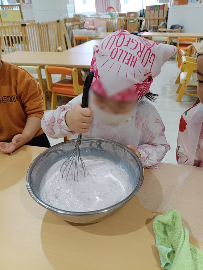 カメリアキッズ調布園では、子どもたちと一緒にフルーチェ作りを行いました。