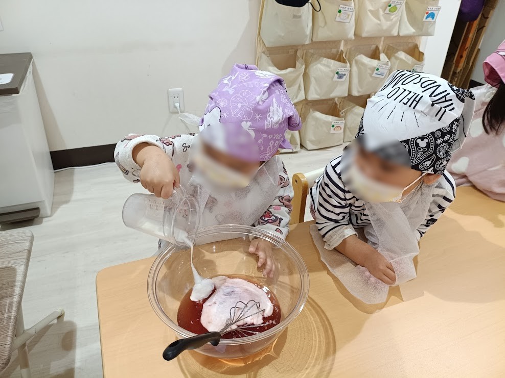 園児たちは友達と協力しながら材料を混ぜる過程を楽しみ、自分たちの手でおいしいデザートを完成させる達成感を味わいました。