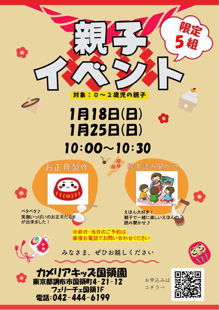 【親子イベントのお知らせ】カメリアキッズ国領園