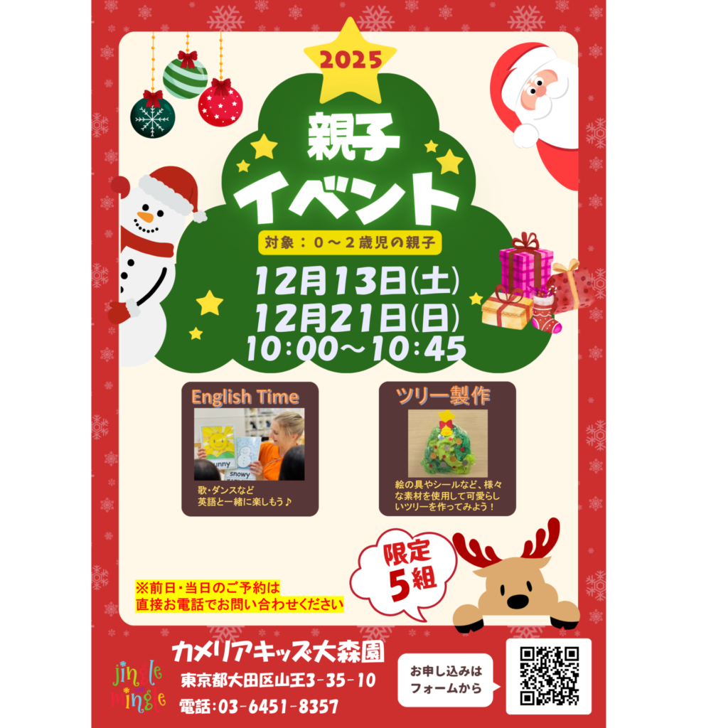 カメリアキッズ大森園では、地域の皆さまに向けた親子イベントを開催いたします。