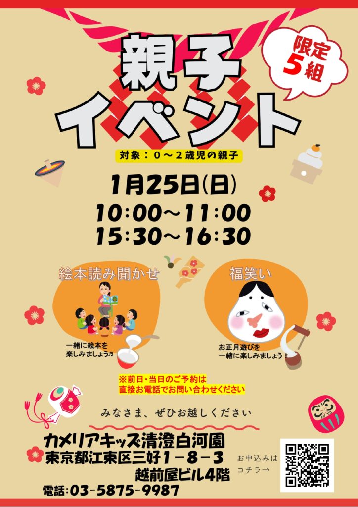 カメリアキッズ清澄白河園では、地域の皆様に向けた親子イベントを開催いたします。