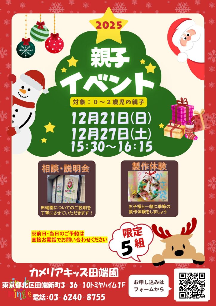 カメリアキッズ田端園では、地域の皆さまに向けた親子イベントを開催いたします。