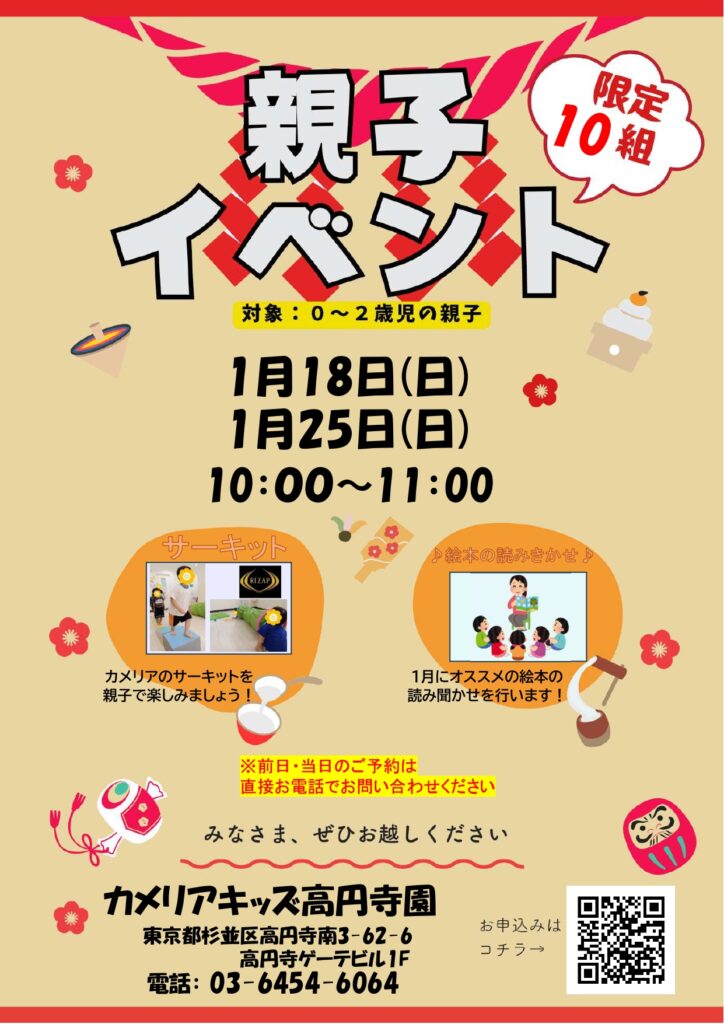 【親子イベントのお知らせ】カメリアキッズ高円寺園