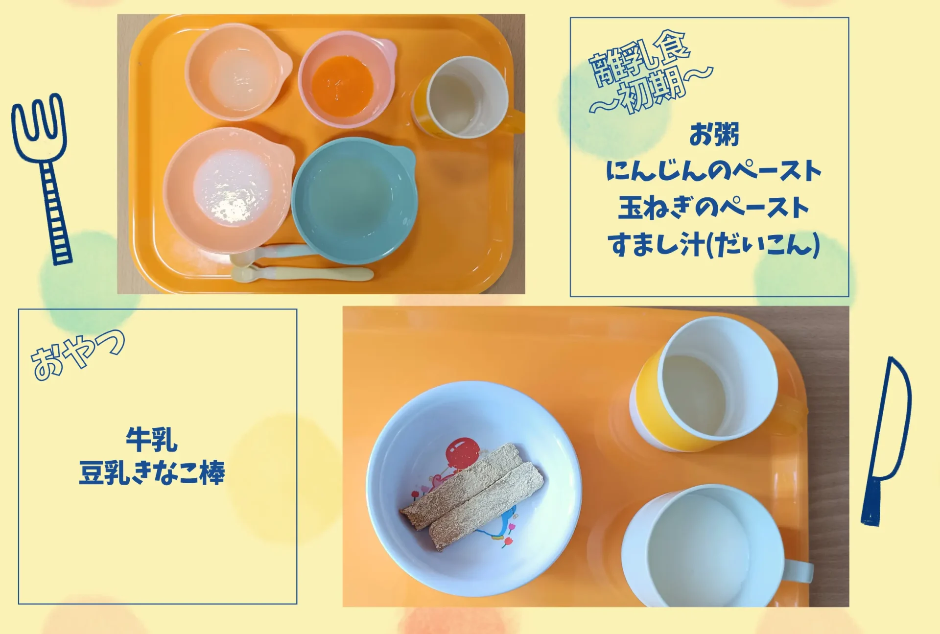 パクパク期大人と同じようなメニューを薄味で柔らかくしたものを提供しています!