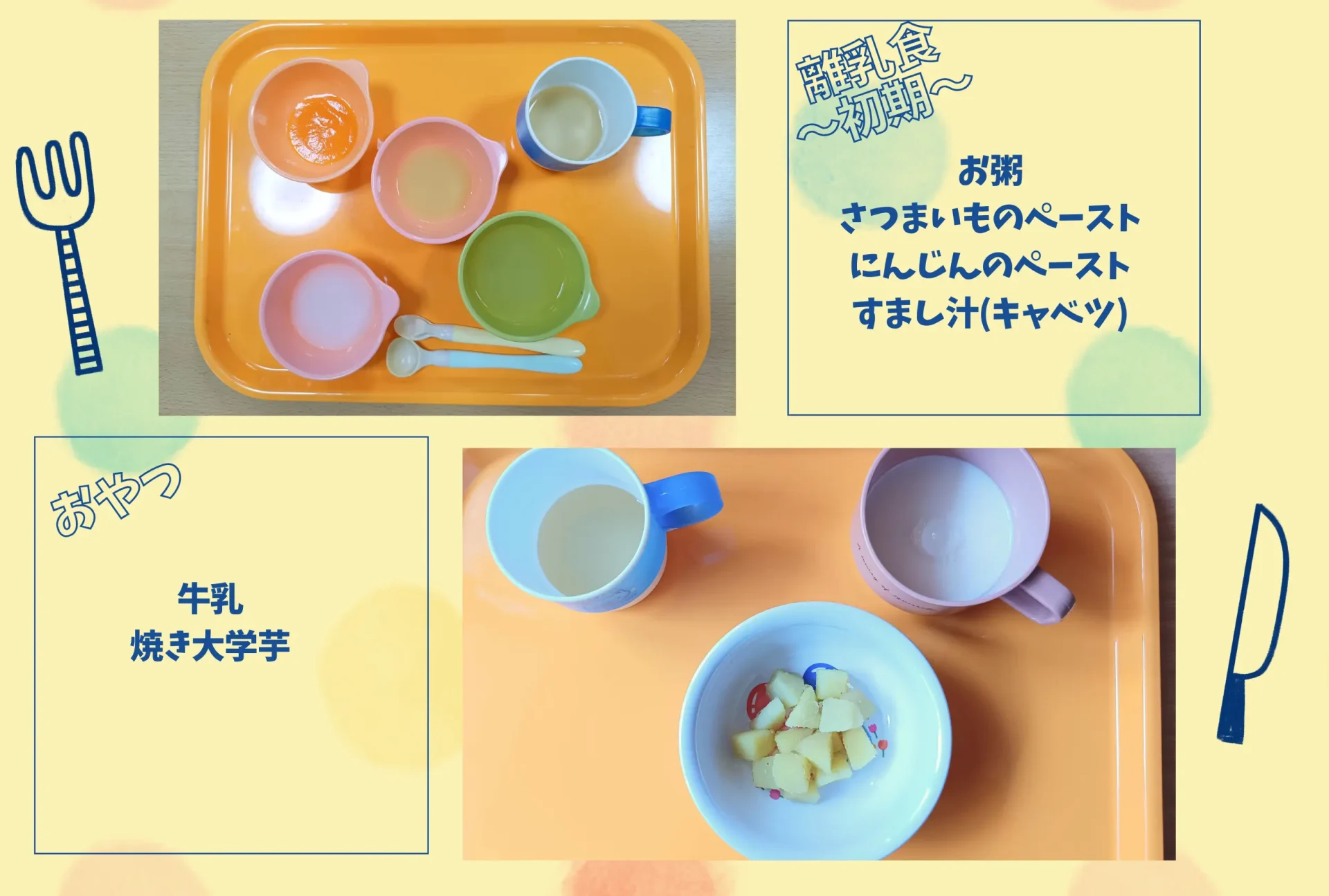 パクパク期大人と同じようなメニューを薄味で柔らかくしたものを提供しています!